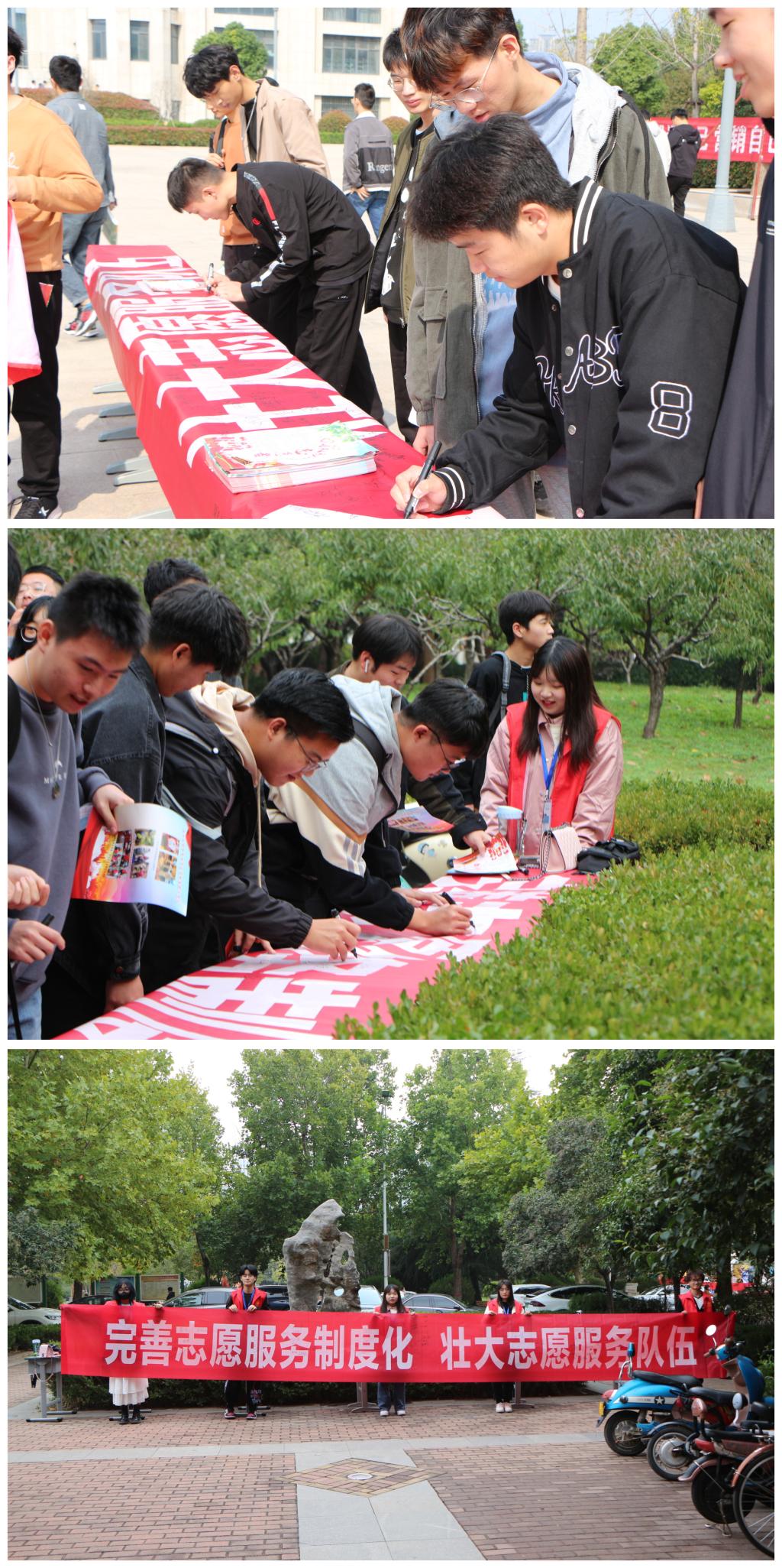 志愿者们提前布置场地,以保证活动顺利开展。路过的同学们纷纷停下脚步,领取志愿服务宣传单,在横幅上认真地签上自己的名字,签下了一份参加志愿服务活动的承诺书,马克笔不停地传递着,同样传递的还有温暖与责任。同时,负责此次活动的志愿者向在场的同学们介绍了志愿服务的具体内容、意义以及目的,还向同学们介绍了球王会在以往志愿服务中涌现出的先进典型,让更多的同学了解到了志愿服务的重要性。同学们纷纷表示通过此次活动,明白了志愿服务的内涵,会将这份爱心传递下去,帮助更多的人。