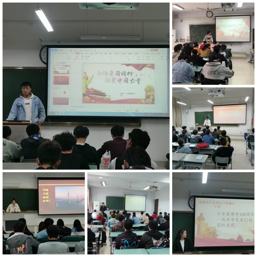 本次爱国主义主题团日活动由各团支部书记组织开展。活动由主讲人提出“什么是爱国主义”开始,这一问题引出团日活动的主题,接着解释了爱国主义的具体内涵并强调:爱国主义不仅体现在政治、法律、道德、艺术等各种意识形态和整个上层建筑之中,而且渗透到社会生活各个方面,成为影响民族和国家命运的重要因素。随后带同学们领略了在中国共产党领导下的中国风采:中国航天勇奔月、中国修建港珠澳大桥、中国的北斗卫星导航系统、中国的疫情防控等,彰显了中国力量。活动的最后主讲人向同学们发出倡议:中国在21世纪所创造的成就还有许多,中国经得起历史的考验,土木学子们应继续期待中国的未来并牢记那些为中国的未来而献身的人民英雄。当前青年正逐步成为新中国的主要力量,我们生在如此美好的时代,应该为祖国的发展尽一份力量,爱护祖国母亲,把这美好的时代守护好!(文/温丽阳图/翁嘉元)