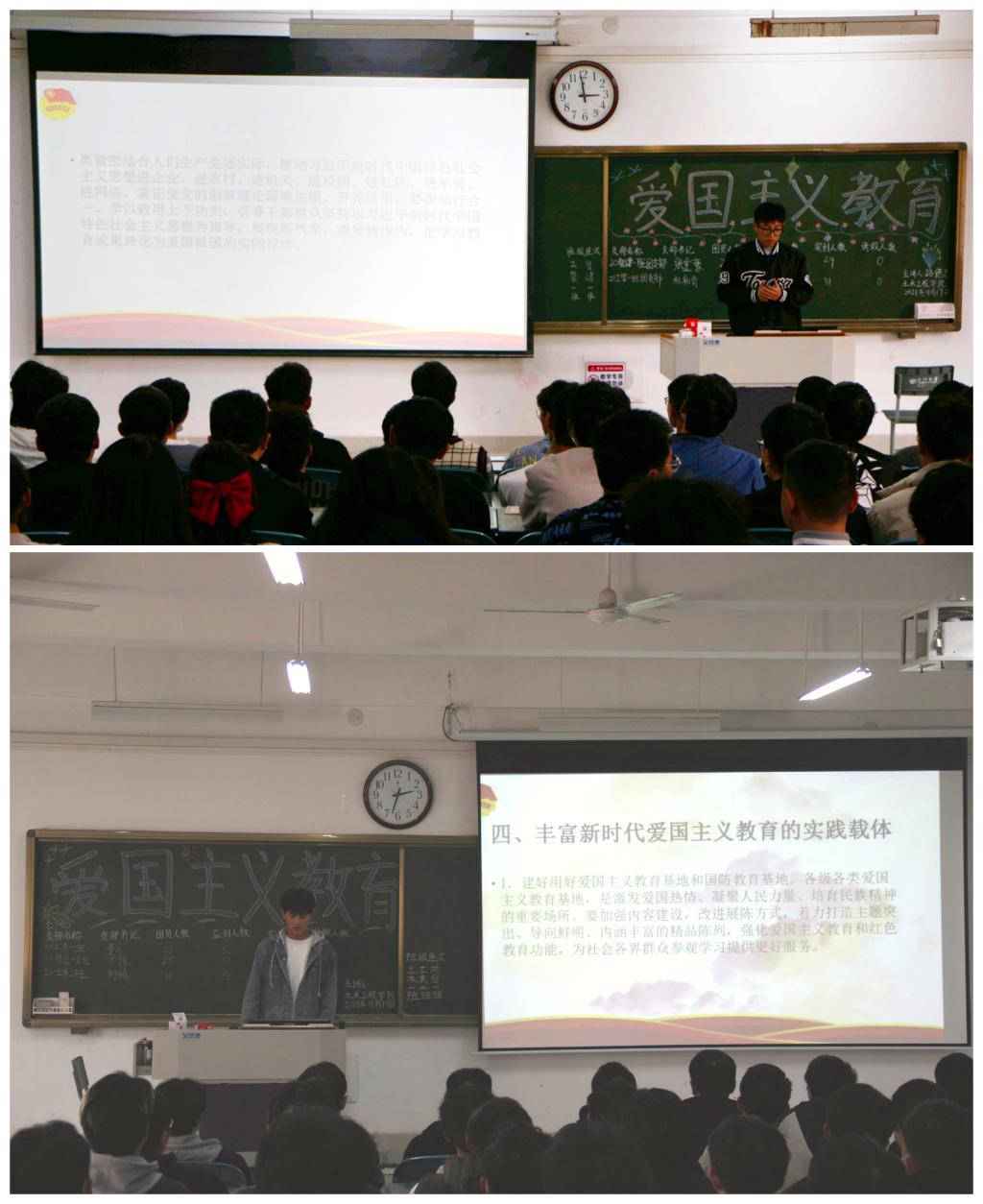 本次主题团课由团支部书记代表担任主讲人,从爱国主义的本质出发,讲述爱国主义包含国家和民族历史教育、民族优秀传统文化教育、国情教育三点。接着解释了爱国主义的具体内涵并强调:坚持以马克思列宁主义、毛泽东思想、邓小平理论、“三个代表”重要思想、科学发展观、习近平新时代中国特色社会主义思想为指导,把实现中华民族伟大复兴的中国梦作为鲜明主题。随后讲到通过课堂教学、思想政治理论课、广泛组织开展实践活动等方式引导青少年树立国家意识、增进爱国情感。