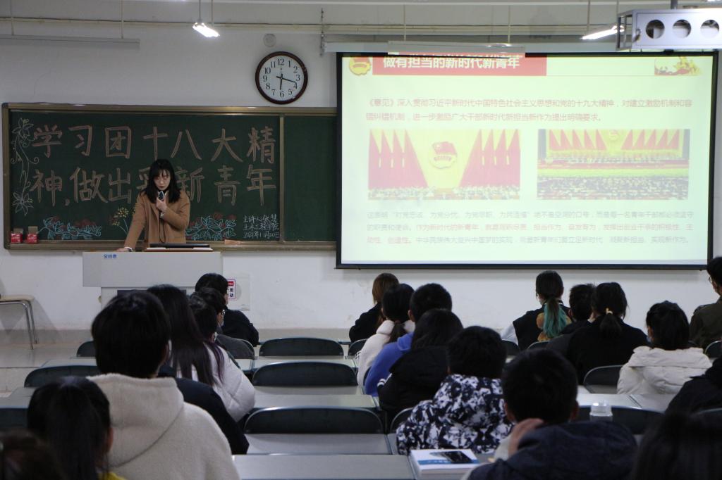 为进一步贯彻落实团十八大会议精神,切实把广大团员青年的思想和行动统一到会议精神上来,2021年11月20日,球王会在金河校区综合楼208开展了本学期最后一次小青马课程,主题为“学习团十八大精神,做出彩新青年。”