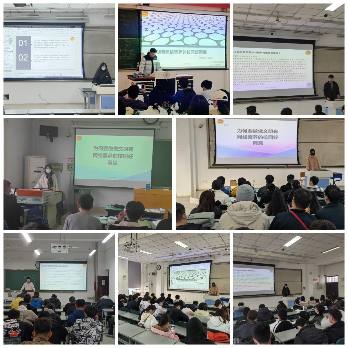 本次活动以班级为单位开展。首先,主讲人表示同学们要明是非,辨真伪,做“火眼金睛”好网民。网络环境纷繁复杂,网络犯罪行为时有发生。同学们要筑牢思想防线,时刻提防黑客攻击、侵犯他人隐私、造谣和散布谣言、发布反动言论、网络诈骗等网络犯罪行为。其次,同学们要遵守网络道德和法律,保护个人信息安全,依法规范自身言行。随后,主讲人提醒同学们要抵制网络成瘾,做理性克制的好网民。