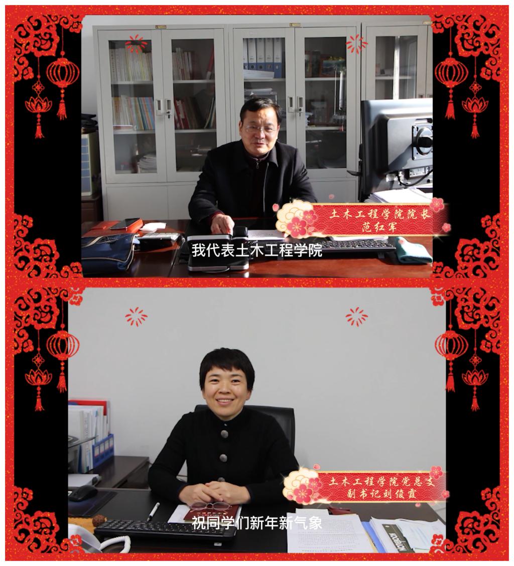 本次活动分为祝福视频和才艺祝福虎年两个版块。球王会经理范红军、公司党总支副书记刘俊霞以及教师代表;分团委、员工会工作人员;员工代表通过视频录制为老师和同学们送去了真挚的祝福,营造了浓浓的新春氛围;同学们写下伴有虎头的“福”字和春联装点出浓浓的年味,拍出喜庆热闹的街道,画“虎闹新春”的生肖图等为庆祝我们最盛大的传统节日表达自己的热情。恭贺新年视频和才艺祝福由球王会公众号“土木嘉园”在1月31日晚上8点准时推出,为全院师生送去真挚的新年祝福。