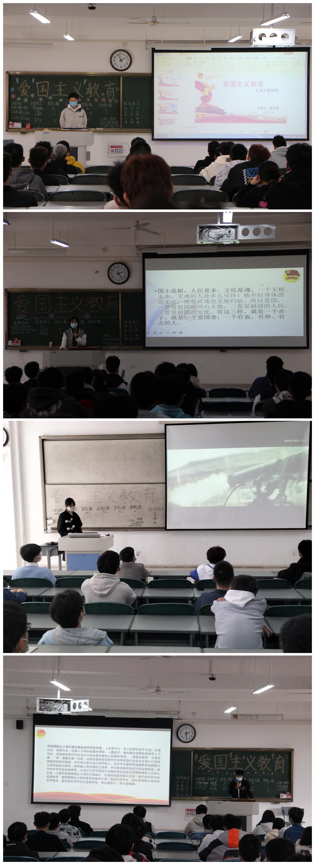 通过“爱国主义教育”主题团课的学习,增强了土木学子的爱国情感和以振兴祖国为己任的责任感,不断弘扬伟大的中华民族精神,传承传统文化,高举爱国主义旗帜,自强不息艰苦奋斗。(文/钟文雅图/张泽严)