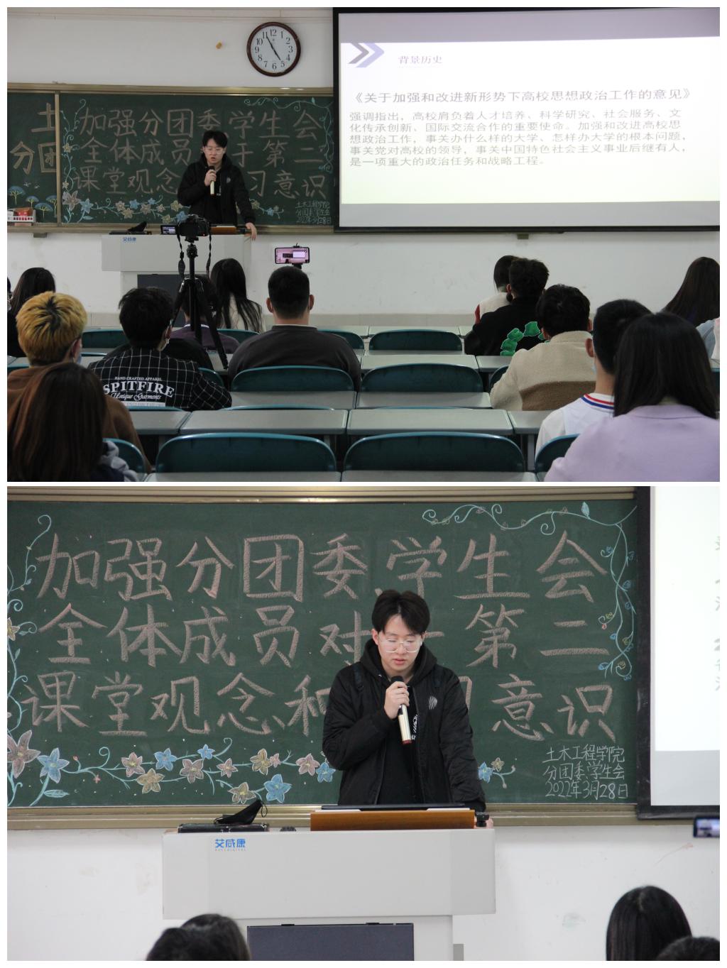 主持人从第二课堂的历史背景、开展形式、评价体系以及学分管理与监督检查以及其意义四个部分进行讲解。为培养人才、进行科学研究、社会服务、文化传承创新、加强和改进高校思想政治工作,球王会通过开放实验室、开展知识技能竞赛、成立课外科研小组等形式实现第二课堂,培养同学们的创新与实践精神。其中,主持人重点指出开展知识技能竞赛提高同学们学习趣味性、调动思维的积极性、有助于培养同学们竞争意识和团队合作意识。通过本次学习有助于分团委、员工会成员明确第二课堂学习目标,努力提高科学文化水平、加强政治文化学习,积极参与校园活动,努力营造第二课堂的浓厚气氛,在全院起到带头作用。