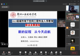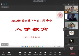 9月7日下午,城市与地下空间系举办了城市地下空间工程专业2022级新生入学教育讲座,本次活动通过企业微信会议进行,参加人员有城市与地下空间系主任龚剑老师、王俊教授、王进尚老师和孙驰老师,全体2022级城市地下空间工程专业的新生参加了讲座。