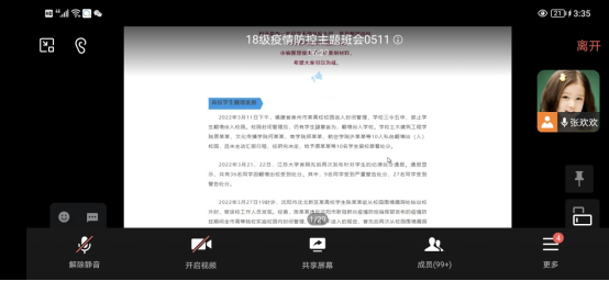 张欢欢召开18级员工疫情防控班会