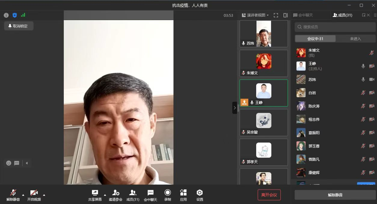 班导师汪菁参加20级员工疫情防控班会