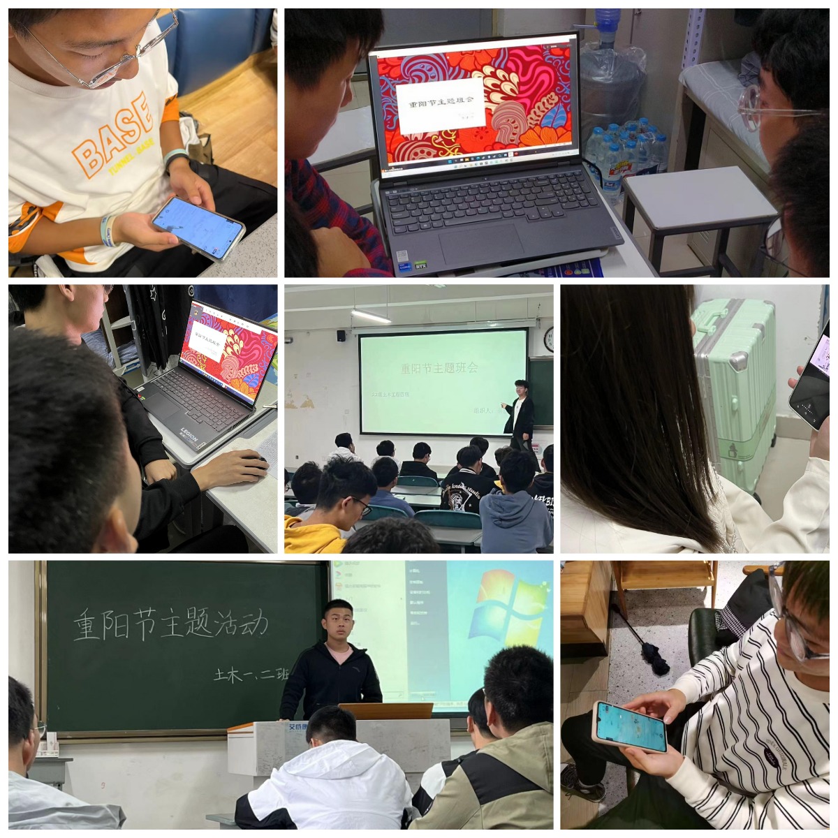 本次活动以“九九重阳享健康,人间百善孝为先”主题班会形式开展。各班级负责人选取线下或线上的方式,通过图片和文字详细的讲解以及重温经典重阳节诗句,让同学们进一步深入的了解重阳节的历史渊源和传统习俗,引导同学们孝敬父母长辈,学会感恩,激发同学们孝老爱亲的内在自觉,懂得敬老爱亲的重要性,做到“老吾老以及人之老”的社会风尚。在主题班会上,同学们积极参与,畅所欲言,发表感想。同学们认为“百善孝为先”,孝为人之本,家家有老人,人人会变老,善待老人就是善待自己。