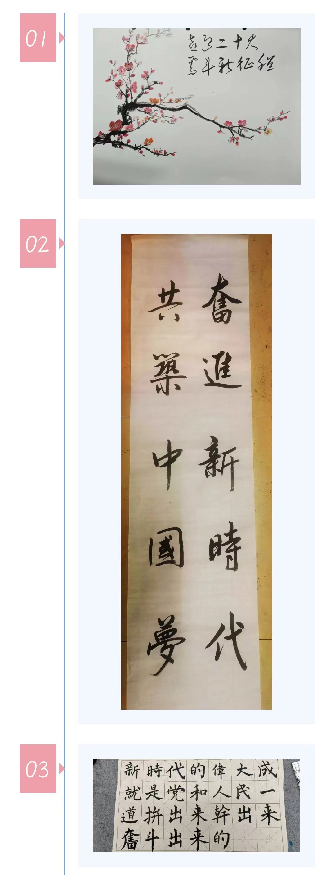 本次活动以“丹青妙笔,光影山河”为主题展开,比赛分为“书法绘画”和“摄影”两个组别,同学们用笔墨和光影来记录伟大祖国日新月异的发展面貌和新时代老员工朝气蓬勃的精神风貌。本次活动精心筹备,广泛动员,同学们积极踊跃报名,选择各自擅长的组别紧紧围绕主题进行创作。“书法绘画组”的同学绘出傲雪欺霜的梅花,以展示祖国不畏霜雪严寒面对冷酷迫害毫不示弱、无所畏惧的形象。同学们的书法作品大气磅礴、苍劲有力,展现出同学们的书法功底。“摄影组”的作品贴近生活,内容丰富多彩,同学们的摄影作品展现祖国的大好河山并记录下人民美好生活的瞬间,展现出同学们对当今美好生活的赞美、对党和国家的炽热情怀以及美好祝愿。最后,同学们的参赛作品经由评委打分与员工投票综合评选,并在郑工土木团学公众号上公布获奖结果。