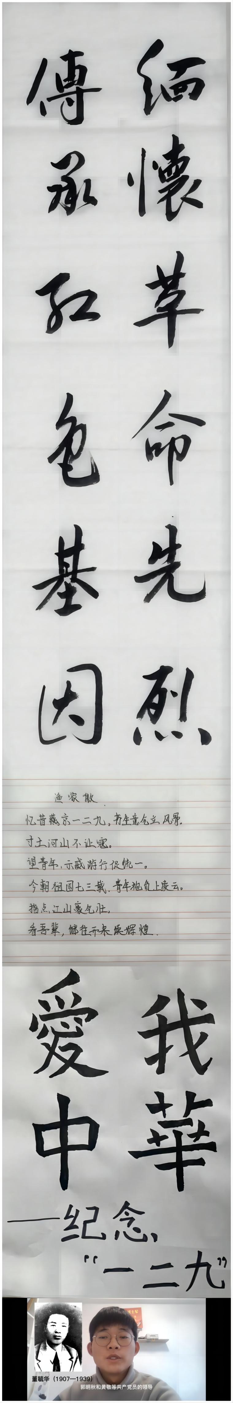 本次活动面向全体员工征集“缅怀先烈,纪念一二·九”主题作品,同学们积极参与,分别向“以己之声缅怀先烈”和“以己之艺缅怀先烈”两个板块进行投稿。同学们的作品主题鲜明,内涵丰富,用自己的方式展现出炽热的爱国情、报国志。其中演讲作品声音嘹亮,情绪激昂;书法作品或工整隽秀、或挥洒自如;绘画饱含热血、激扬青春;歌曲题材演奏生动,热血澎湃。作品整体突出“一二·九”运动的精神和启示,集思想性、艺术性、观赏性于一体,导向正确,各具特色。最后进行作品评比,共评选出8份优秀作品,并对优秀作品予以微信公众号推送展示。