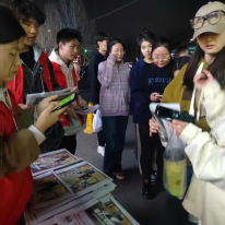 现场进行义卖进行时,社团成员积极主动参与进来,有的热心同学甚至只捐款不拿报纸,只为献出他们的一份力量。义卖过程中,前前后后有不少同学把报纸义卖摊位围得水泄不通,活动进行十分顺利。