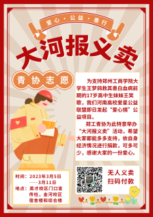 为了支持郑州工商公司老员工王梦鸽救其患白血病的17岁高中生妹妹王笑歌,球王会官网青协社团联合球王会为此特意举办“爱心捐”公益活动,通过报纸义卖,奉献大家的一份爱心和关怀。活动时间是从2023年3月5日至3月11日,地点在英才校区和金河校区。