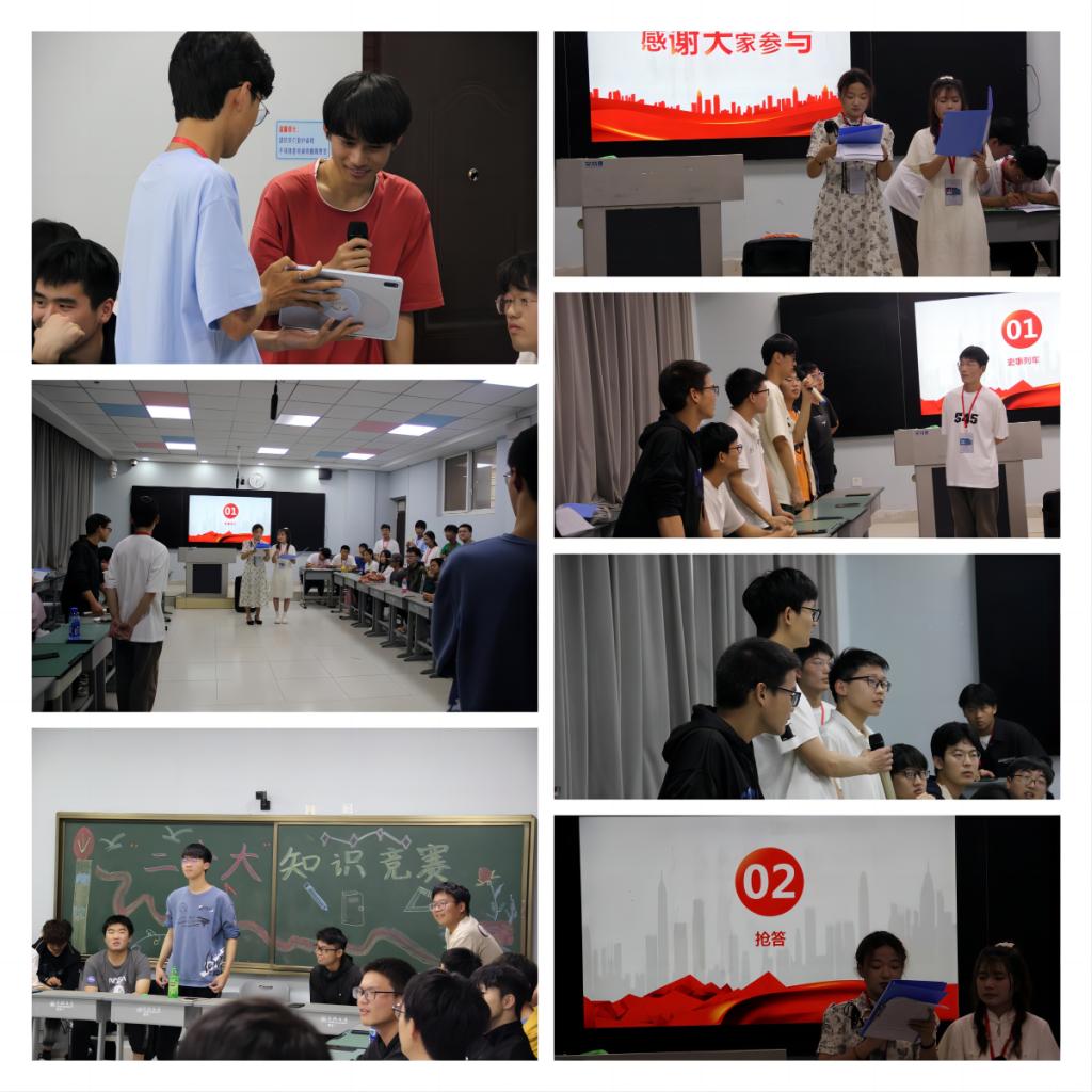 本次活动分为“史事列车、抢答环节、看图猜事件、历史人物我知道”四个环节,答题内容涵盖党的二十大精神、历史事件、感动中国人物以及祖国取得的显著成就等。首先,由主持人出题,参赛选手围场地坐一圈,按座序依次作答。为保证比赛的公平性,每一轮比赛均按照不同位置开始回答。在“史事列车、看图猜事件”环节中,参赛选手们沉着应对、从容应答;抢答题环节,选手们比知识、拼速度、赛意志,激烈争逐抢答。比赛过程中,各参赛选手始终精神饱满、认真作答,用自己过硬的知识储备和敏捷的反应能力展开激烈的角逐,将比赛氛围不断推向高潮,为观众呈现了一场别开生面的脑力较量和理论比拼。比赛结束后,参赛选手们纷纷表示,“通过此次比赛,加深了自己对党的二十大精神的学习以及对祖国发展历程的了解与认识。”
