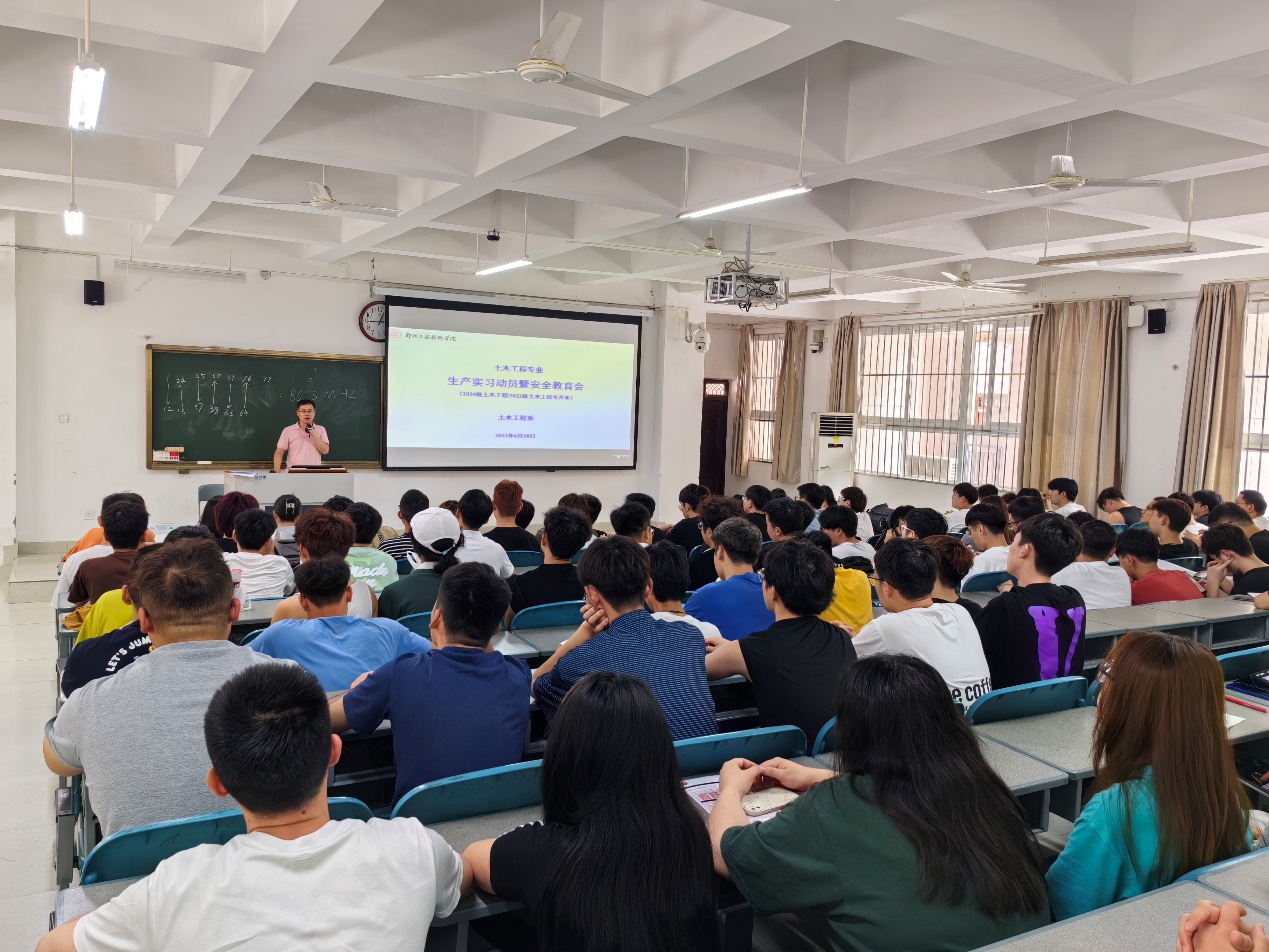 2023年6月28日下午,土木工程系在金河校区综合楼阶一教室召开了土木工程专业2023年暑假生产实习动员暨安全教育会。参与生产实习的指导教师、学工办主任孙旭朝以及2020级土木工程专业、2022级土木工程专升本的全体员工参与了此次会议,由土木工程系负责人宋荣方主持。
