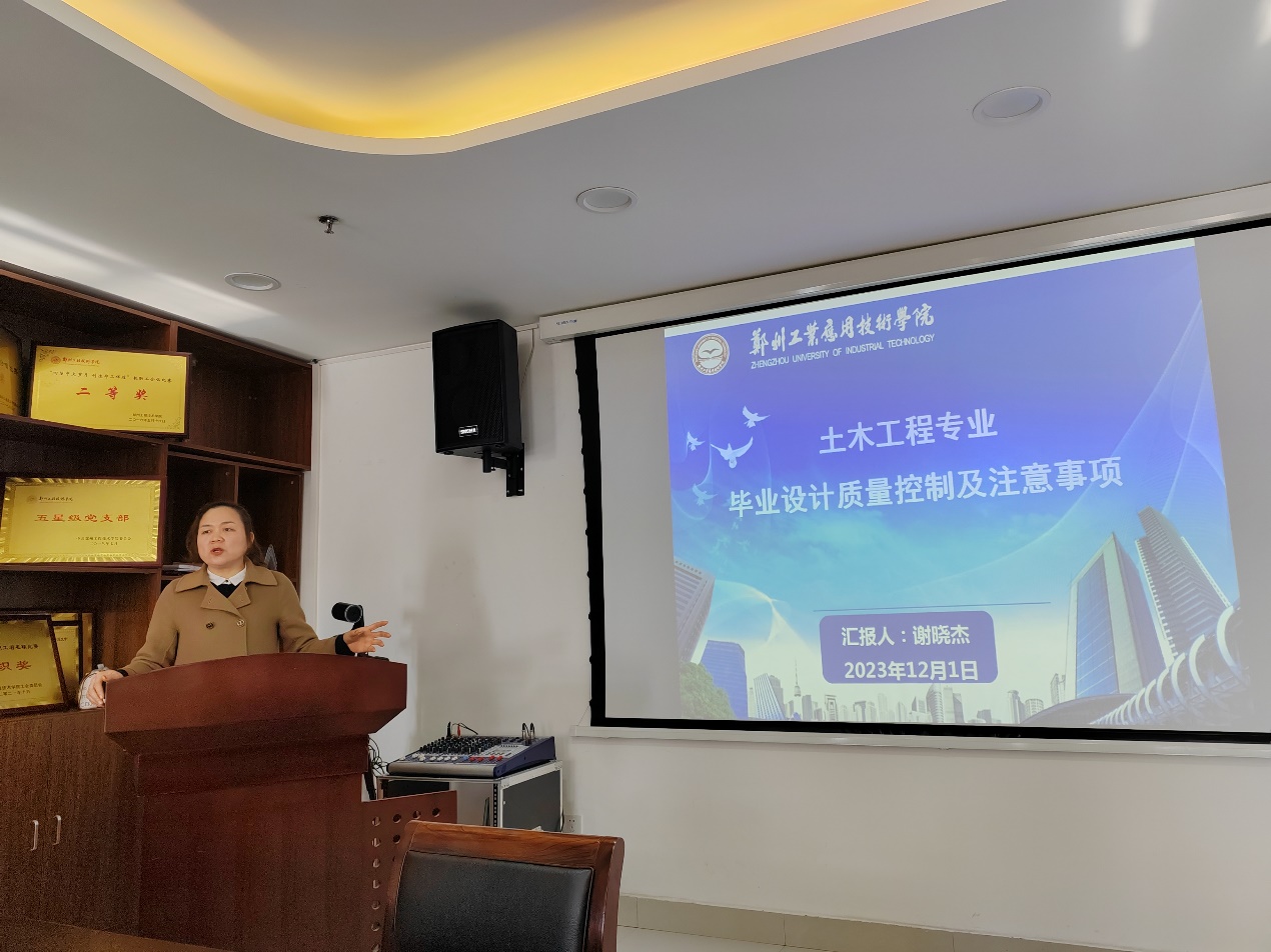 12月1日上午,土木工程系邀请郑州工业应用技术公司建筑工程公司谢晓杰经理做了“毕业设计质量控制及注意事项”专题讲座,讲座在图书馆1601举行,由土木工程系负责人宋荣方主持,土木系全体教师参加。