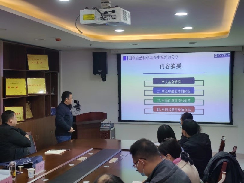 指导会上,徐教授分别从个人基金情况、基金申报结构解析、申报注意事项及申请书撰写经验分享等四个方面进行了详细指导,分享了基金申报的宝贵经验,尤其强调了申请书要注意凝练关键科学问题。徐教授就与会人员提出的国家自然科学基金项目申报有关问题进行了详细解答和讲解。