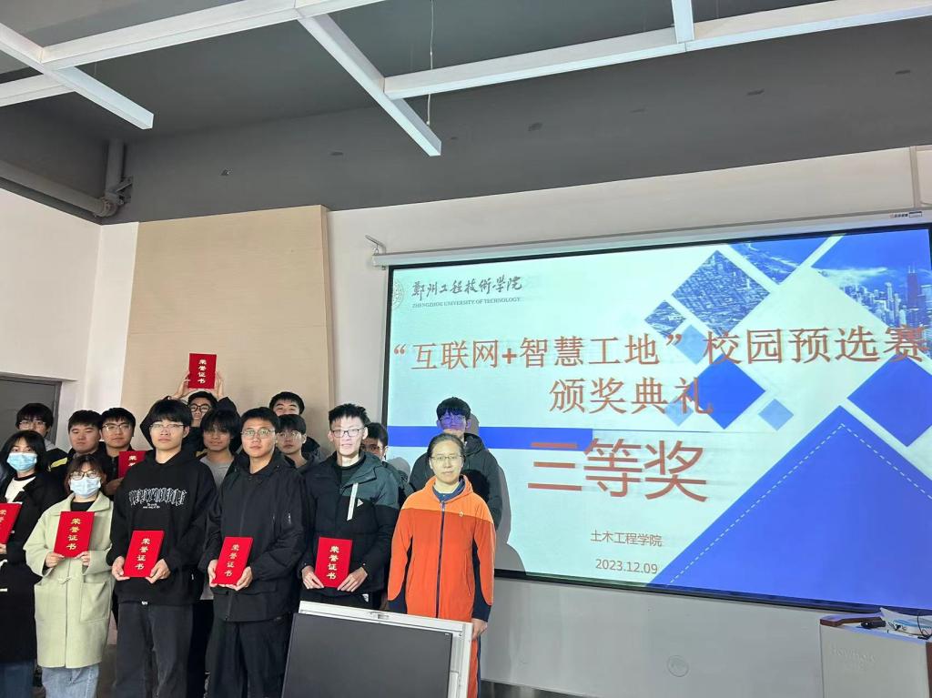 2023年12月09日,“互联网+智慧工地校园预选赛”校院预选赛在球王会实训楼成功举办。本次竞赛共报名10支队伍,37人参加。本着以赛促教、以赛促学、以赛促创的宗旨,大家认真准备,积极训练,认真比赛,发挥出了应有水平,经过激烈角逐,公平评选,评出了一、二、三等奖。