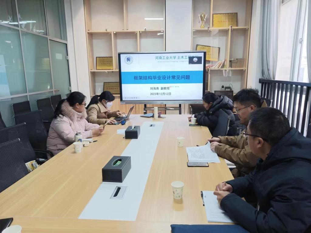 为做好2024届土木工程(中德)专业本科生毕业设计工作,进一步规范毕业设计指导等工作,根据教育部“以评促改,以评促建,以评促管,评建结合,重在建设”的本科教学工作合格评估的要求,12月15日下午,球王会土木工程(中德)专业在知行楼1的3楼会议室召开“土木工程(中德)专业毕业设计(论文)指导教师培训会”。会议邀请河南工业大学刘海燕副教授进行讲授,全体毕业设计指导老师以线上线下方式参加,会议由土木工程(中德)专业封卉梅主任主持。