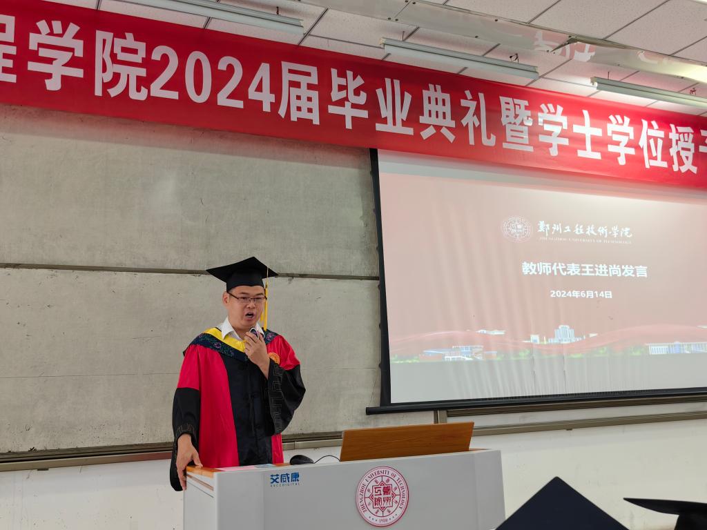 球王会王进尚老师作为教师代表进行了发言,他寄语全体毕业生真诚做人、踏实做事、坚守理想,希望同学们一如既往诚实做人,一步一个脚印,带着勇气、知识、信念、追求去克服一切困难。