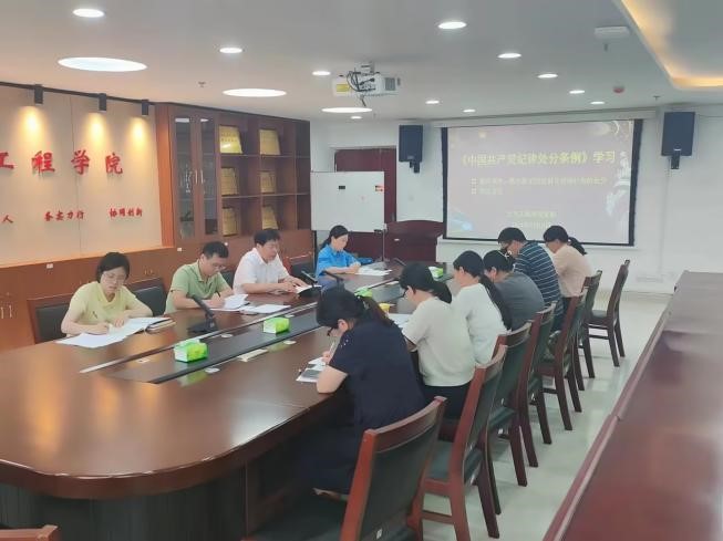 6月19日下午,土木工程系党支部在金河校区图书馆1603召开《中国共产党纪律处分条例》专题学习交流会,集中学习《中国共产党纪律处分条例》第九章 对违反群众纪律行为的处分,并进行了深入的讨论交流。副董事长杨庆年以一名普通党员身份和土木工程系党支部全体党员参加了会议,会议由党支部负责人宋荣方主持。