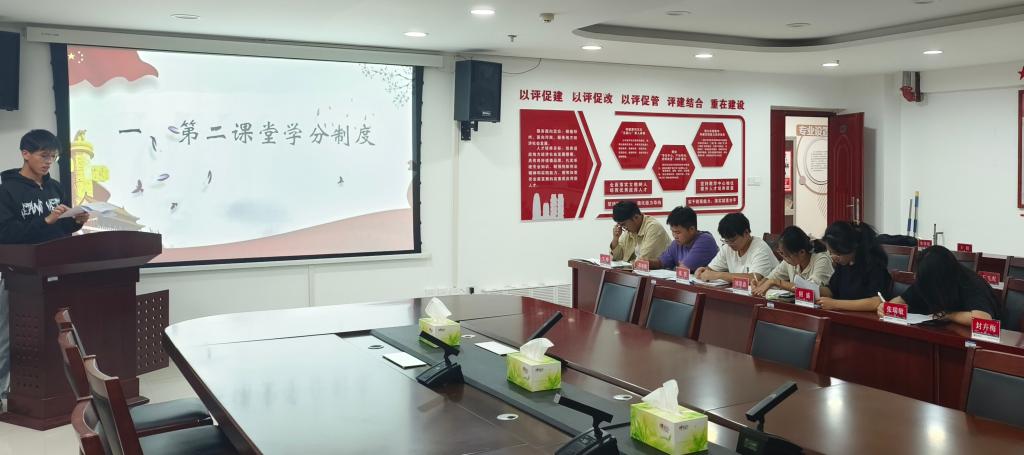 首先,主讲人黄大帅详细介绍了“第二课堂成绩单”制度实施工作组的构成,以及工作组的主要职责和工作分工,随后介绍了“第二课堂成绩单”的组成部分,详细讲解了按内容分成的六个模块的详细内容,以及每位员工需要获得的学分分数,以及模块覆盖数。同学们认真听讲、积极互动,纷纷表示此次培训活动受益匪浅,通过此次培训,增强了对“第二课堂成绩单”的认识。