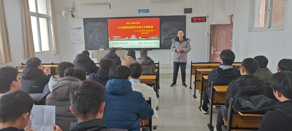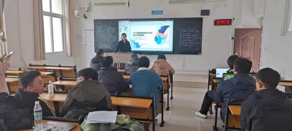 2025年3月5日下午,智能建造专业2025届本科生毕业设计中期检查答辩在综合教学楼203教室顺利举行。智能建造系全体指导教师及2025届毕业生共同参与,通过全面自查、现场汇报和专家评议,对毕业设计进度和质量进行阶段性把控,为后续工作的高效推进奠定基础。