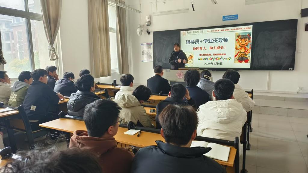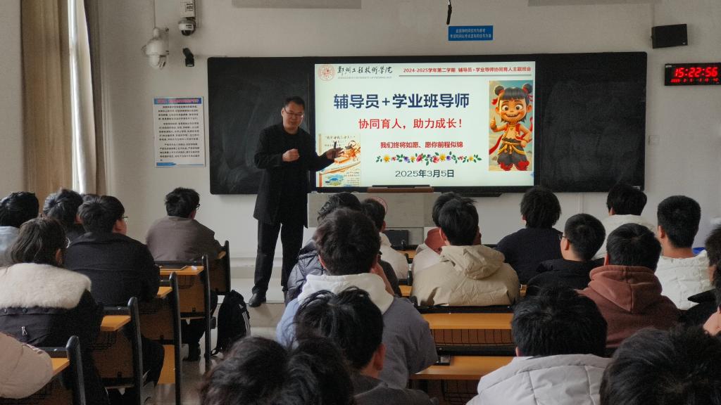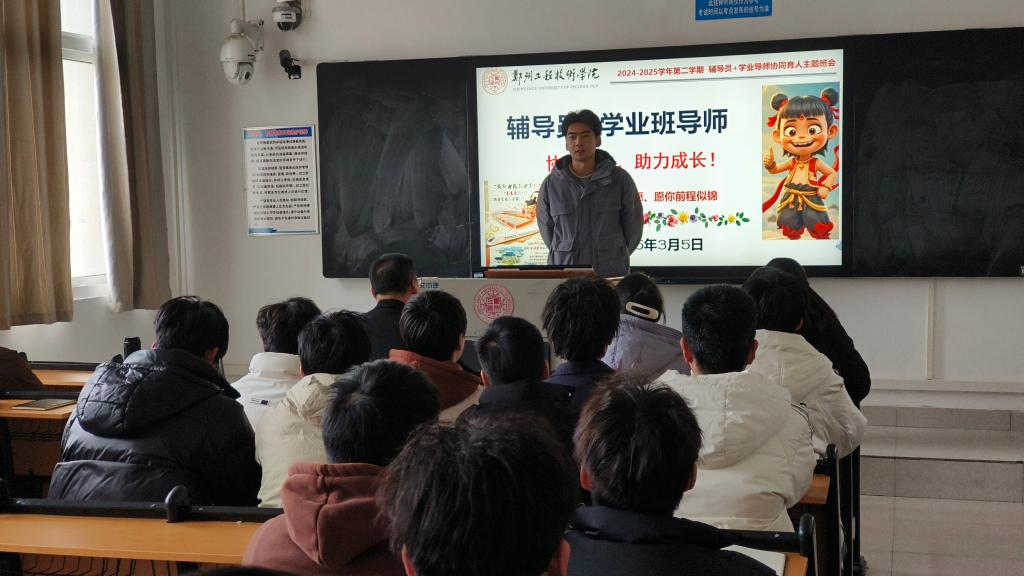 新学期开始,为帮助同学们更好地规划学业,明确人生目标,2023级城市地下空间工程专业于2025年3月5日下午在金河校区综合教学楼201教室召开了“辅导员+学业导师协同育人主题班会”。此次班会辅导员孙旭朝,班导师王进尚、邹旭岩,三位老师老师和2023级城市地下空间工程专业全体同学参加,同时邀请了2026届考研优秀的刘泉峰同学进行经验分享。