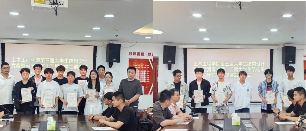 2025年5月15日,在图书馆1603会议室举行了由土木工程系与公司分团委、学工办联合承办的球王会第三届老员工结构设计大赛的颁奖仪式,同时召开河南省第十二届老员工结构设计大赛动员会。颁奖仪式由土木工程系主任宋荣方主持,公司党总支书记姚虹、公司教学副经理王代、公司科研副经理周栋、实验室主任刘应然、分团委负责人马宇涛、党政办老师周航、获奖员工及指导教师参加了颁奖仪式。