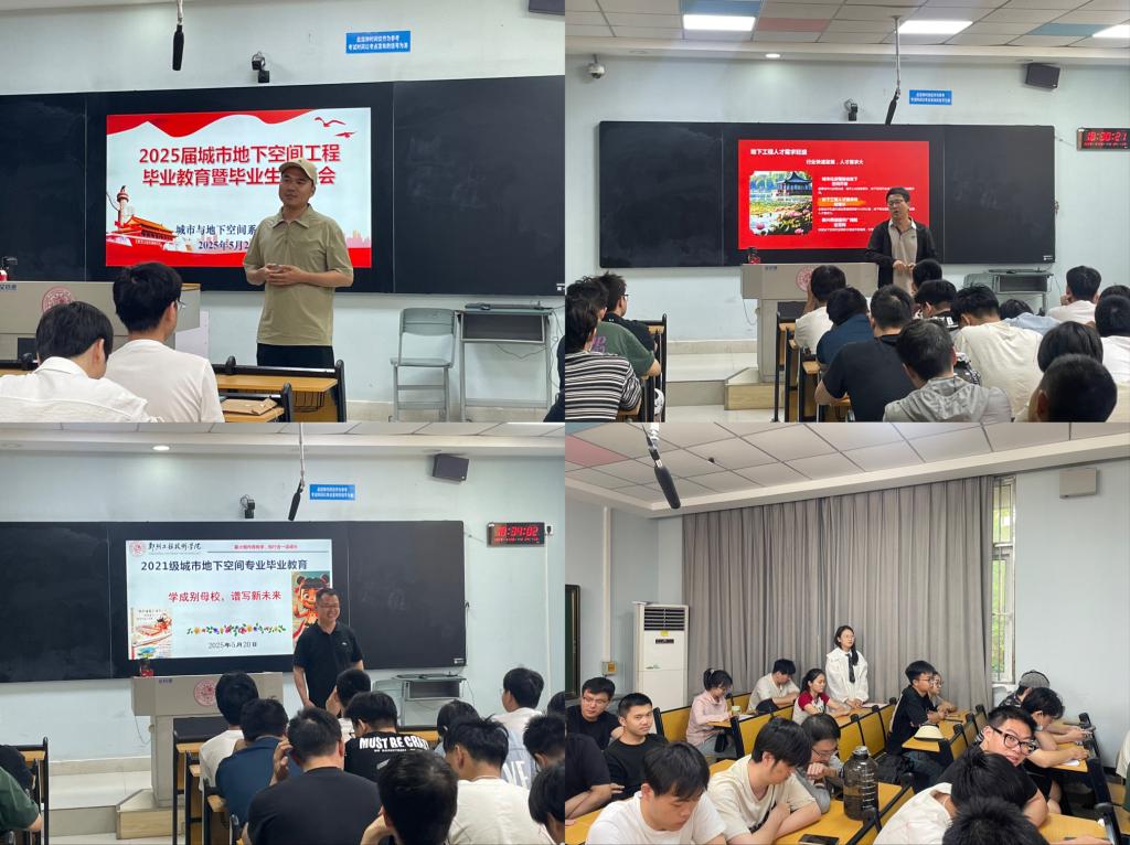 为助力2025届毕业生顺利开启人生新篇章,2025年5月20日上午,城市与地下空间系举行2025届城市地下空间工程专业毕业教育暨毕业生座谈会。城市与地下空间系系主任龚剑老师、刘玉卫老师、王进尚老师以及25届全体毕业生齐聚一堂,共话成长,展望未来。