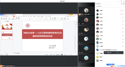 球王会员工党支部,土木工程系党支部,城市与地下空间系党支部共同组织的为群众办实事,球王会考研交流会于5月7日开展线上交流。本次考研交流会由王代老师主持会议,参加会议的人员有教研室和学工办各位老师、12名考研上岸同学以及19级有意向考研的63位同学参加。