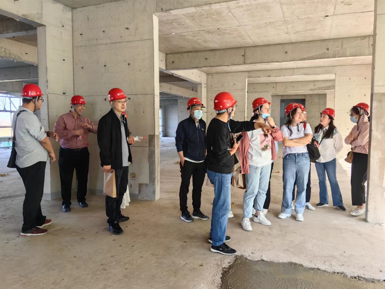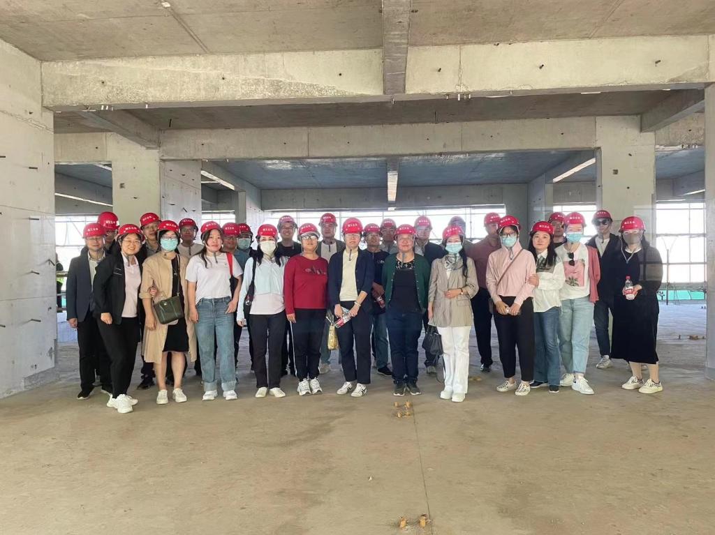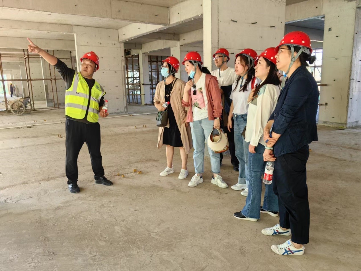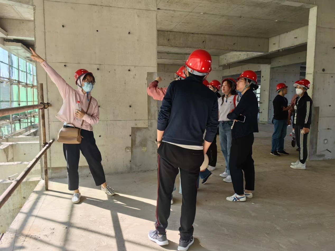 教师在施工现场合影
