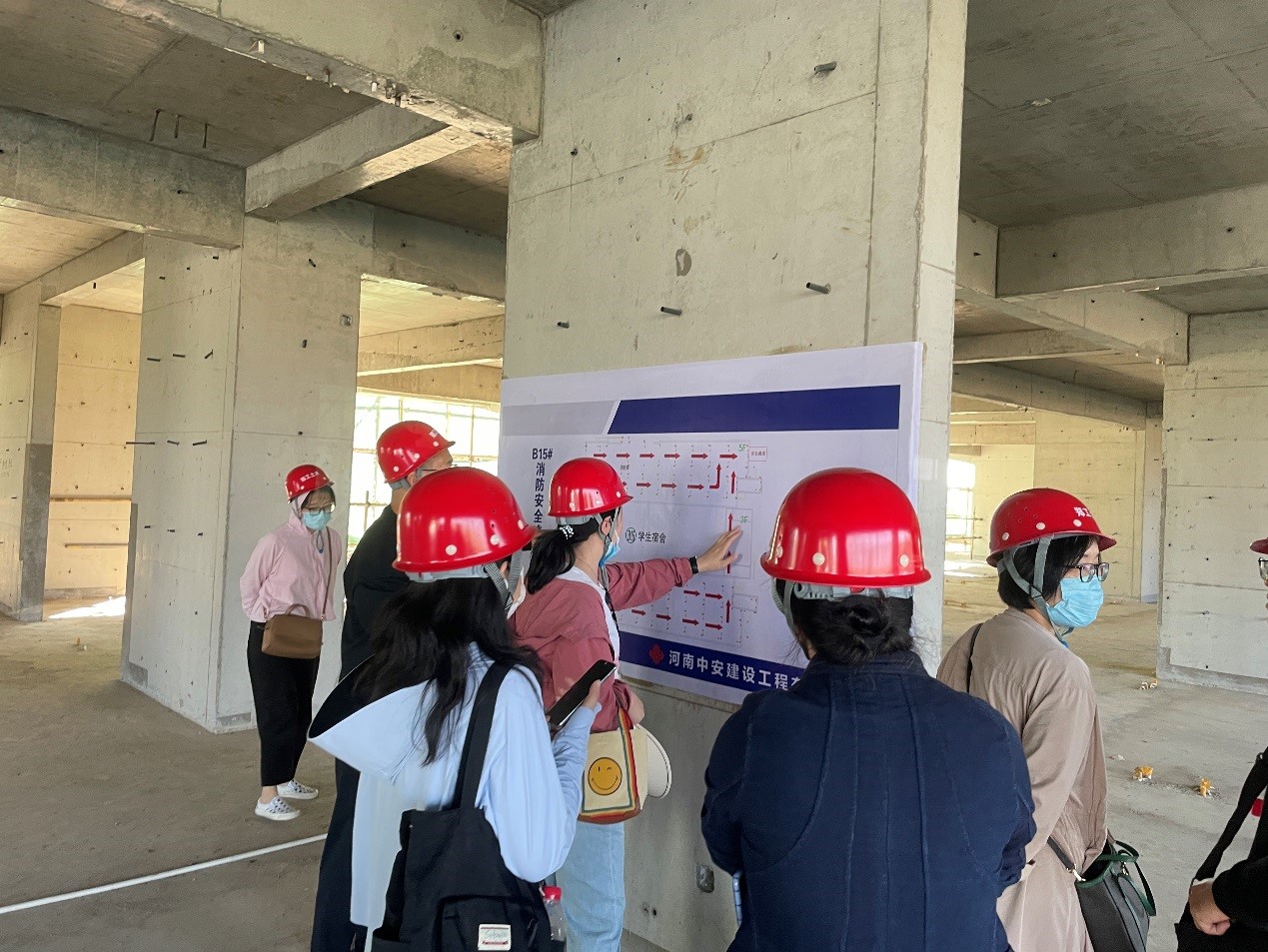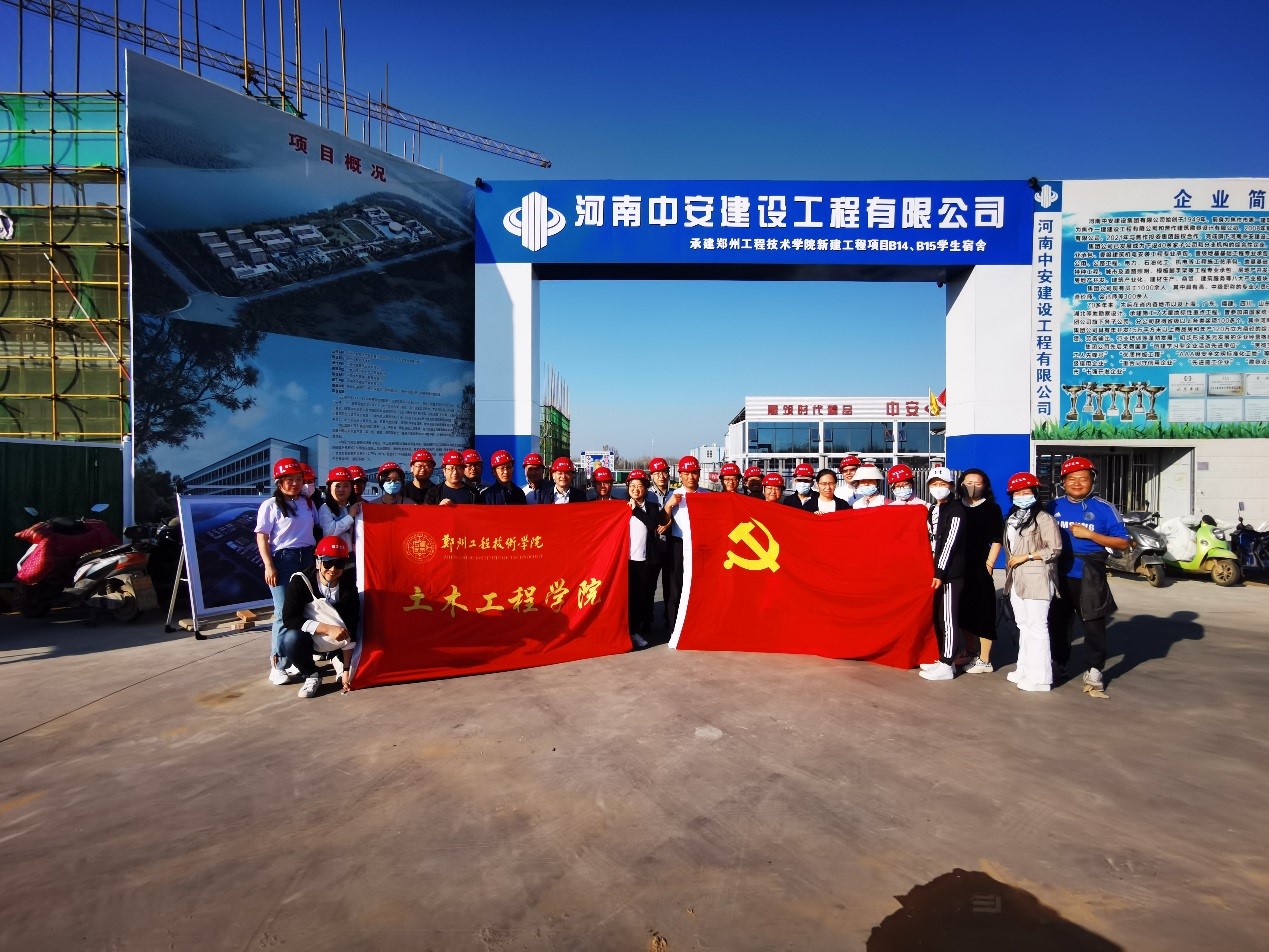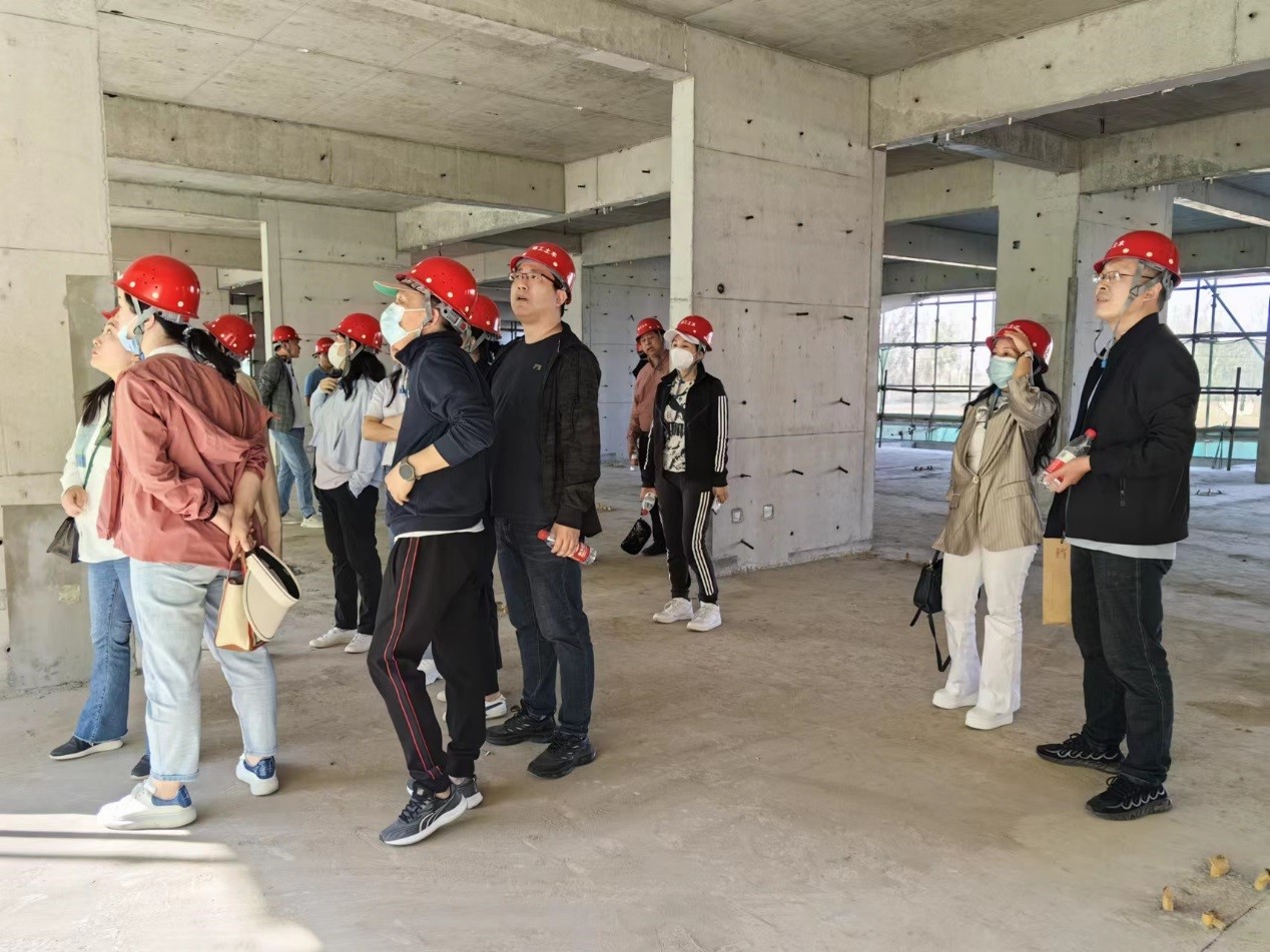 教师在施工现场合影