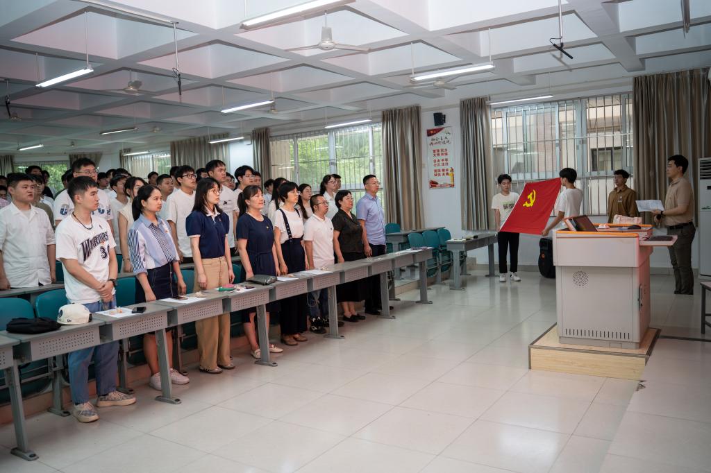 为进一步加强党员的党性教育和纪律意识,提高党员队伍的凝聚力和战斗力,6月12日下午,公司党总支在金河校区综合楼阶一教室,隆重举行了一场别开生面的党纪学习教育暨入党宣誓仪式。员工支部全体党员及部分入党积极分子共聚一堂,共同见证了这一庄严时刻。仪式伊始,全体党员起立,奏响国歌,现场气氛庄重而热烈。
