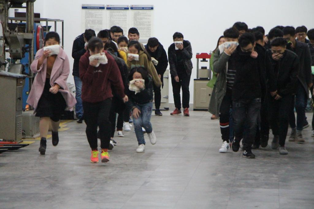 首先,公司孙旭朝老师对本次活动进行了详细讲解。从如何报火警、火灾的预防、火场自救和逃生方法等消防安全基本常识向同学们进行了说明。随后,孙老师指导员工开展了一次室内安全疏散消防演练。演练中,全体员工在老师的指导下,弯着腰,用湿毛巾捂着口鼻,沿着指定楼梯口有序撤退到安全地带。