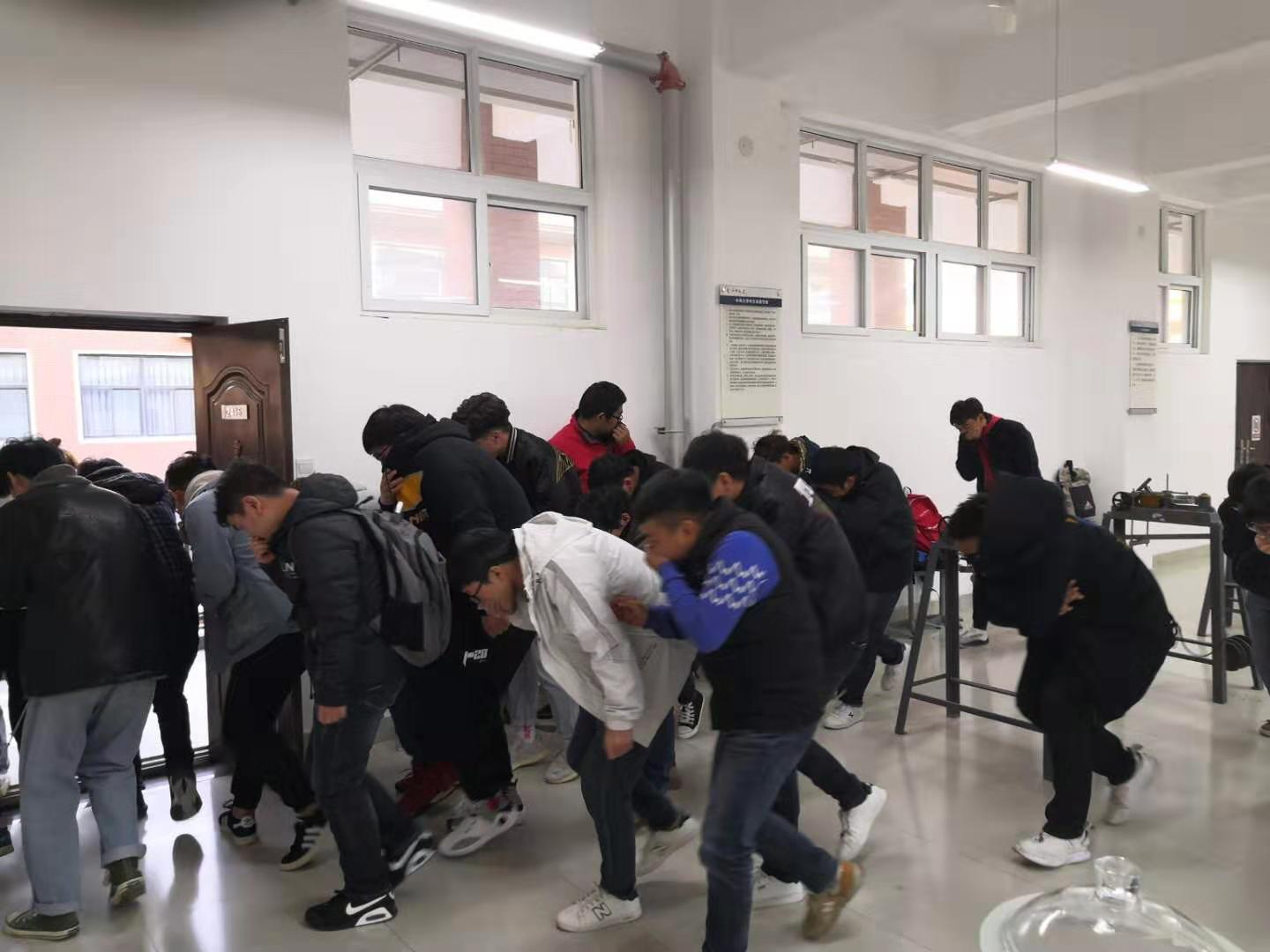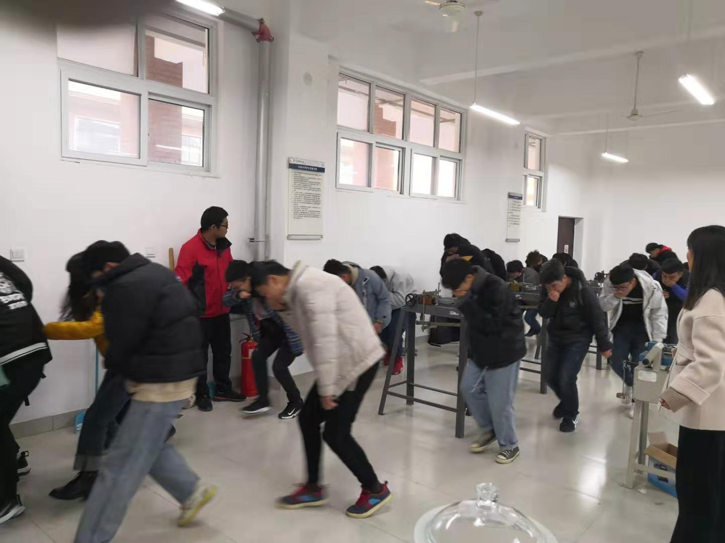 演习开始前,公司团委员工会召开工作和统一安排会议,结合实际共同制定了疏散演练方案,为同学们就近规划疏散路线与集合点,清理疏散线路上的障碍,安排疏散老师,并让公司各团支部提前做好有关的安全知识宣传工作。随着警报声响起,同学们在孙旭朝老师的疏散指挥下,按照预先制定的路线,从各自的位置弯着腰、用手捂着鼻子井然有序地撤离到集合点,整个过程不过5分钟,同学们从容镇定,没有发生任何拥挤踩踏事故。随后,辅导员孙旭朝老师在集合点对人员进行逐个清点,在确定无人员受伤、缺席之后,同学们就地解散。
