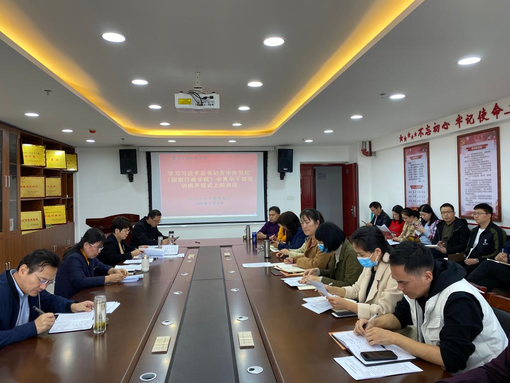 首先,公司党总支书记刘静领学了习近平在中央党校(国家行政公司)中青年干部培训班开班仪式上的重要讲话。刘书记强调,公司上下要认真领会落实习总书记要求的“政治能力、调查研究能力、科学决策能力、改革攻坚能力、应急处突能力、群众工作能力、抓落实能力”围绕公司及公司的重点工作,凝心聚力,真抓实干,为公司转型发展和本科合格评估贡献力量。