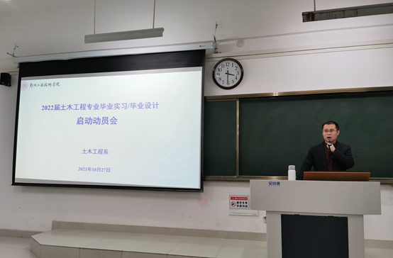 1027日下午,土木工程系在综合楼104教室召开2022届土木工程专业毕业设计暨毕业实习动员会,2022届土木工程专业全体毕业生以及指导教师参会。
