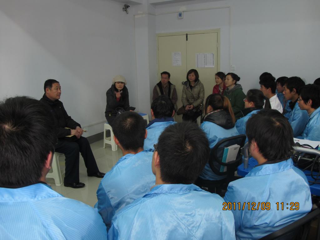 在走访的过程中,老师们看望了正在进行实习培训的09级电子电气员工,并进行了座谈。宋经理做了简短的发言,鼓励同学们安心实习,吃苦耐劳,把工作做好,把技术练扎实,为企业多做贡献,克服浮躁情绪,把目前的工作当成一份事业去做,提醒同学们注意安全,并要求大家互助互爱,共同营造一个温馨的工作、学习、生活环境。教研室许春香主任也对实习提出了明确的专业要求,对同学们寄予了深切的期望。