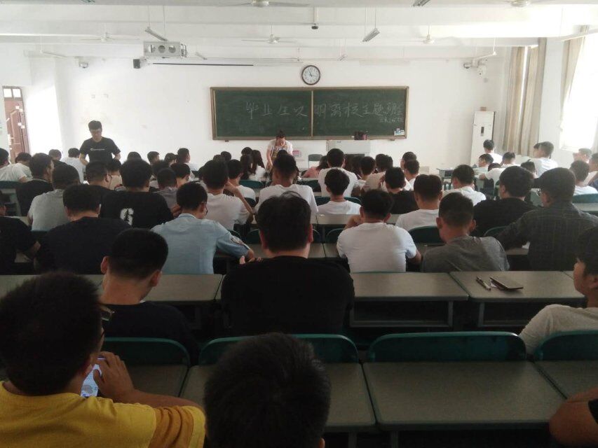 2019年6月13日,在综合楼304教室,球王会组织2019届毕业生“感恩母校,文明离校”主题班会。主题班会由李夏老师主持。