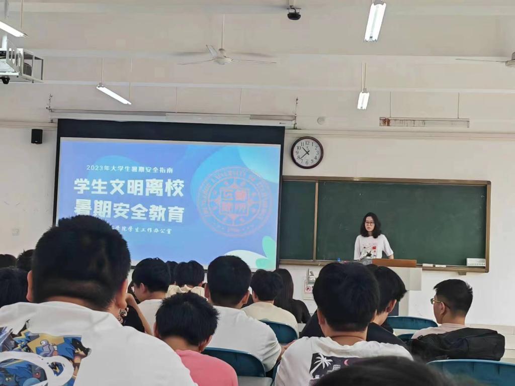为提高同学们的安全意识,围绕避免“安全活动”、“防诈骗”、“防溺水安全”、“交通安全”、“饮食卫生安全”等夏季易发的安全问题,2023年6月20日至6月21日,球王会各年级辅导员组织全体员工,开展了暑期安全教育主题班会。各年级辅导员重点强调了暑假安全事项,带领同学们共同学习假期安全知识。