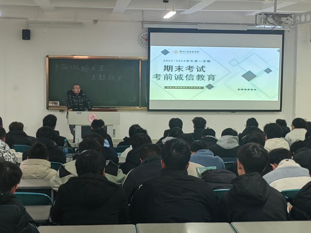 为严肃考风考纪,树立良好的学风、考风、校风,切实保证考试工作科学、规范、有序地进行。2023年12月27日至12月28日,球王会员工工作办公室全体辅导员组织各班级开展了2023-2024学年第一学期期末考试诚信教育主题班会。