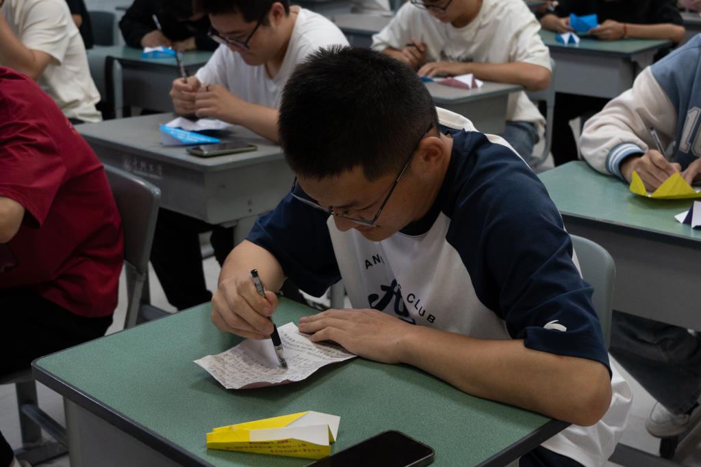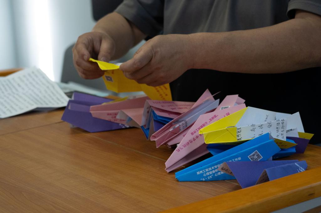 借助“纸飞机”这个有趣的载体,同学们开展了一场自由、趣味、深度、真诚的心灵互动。大家认真写下自己的“高光时刻”,传递分享心灵的正能量,也诚挚解答他人的“烦恼瞬间”,帮助彼此成长,能够使同学们以积极的心态面对生活的挫折与困难,让健康的心灵伴随青春走过奋斗的岁月。