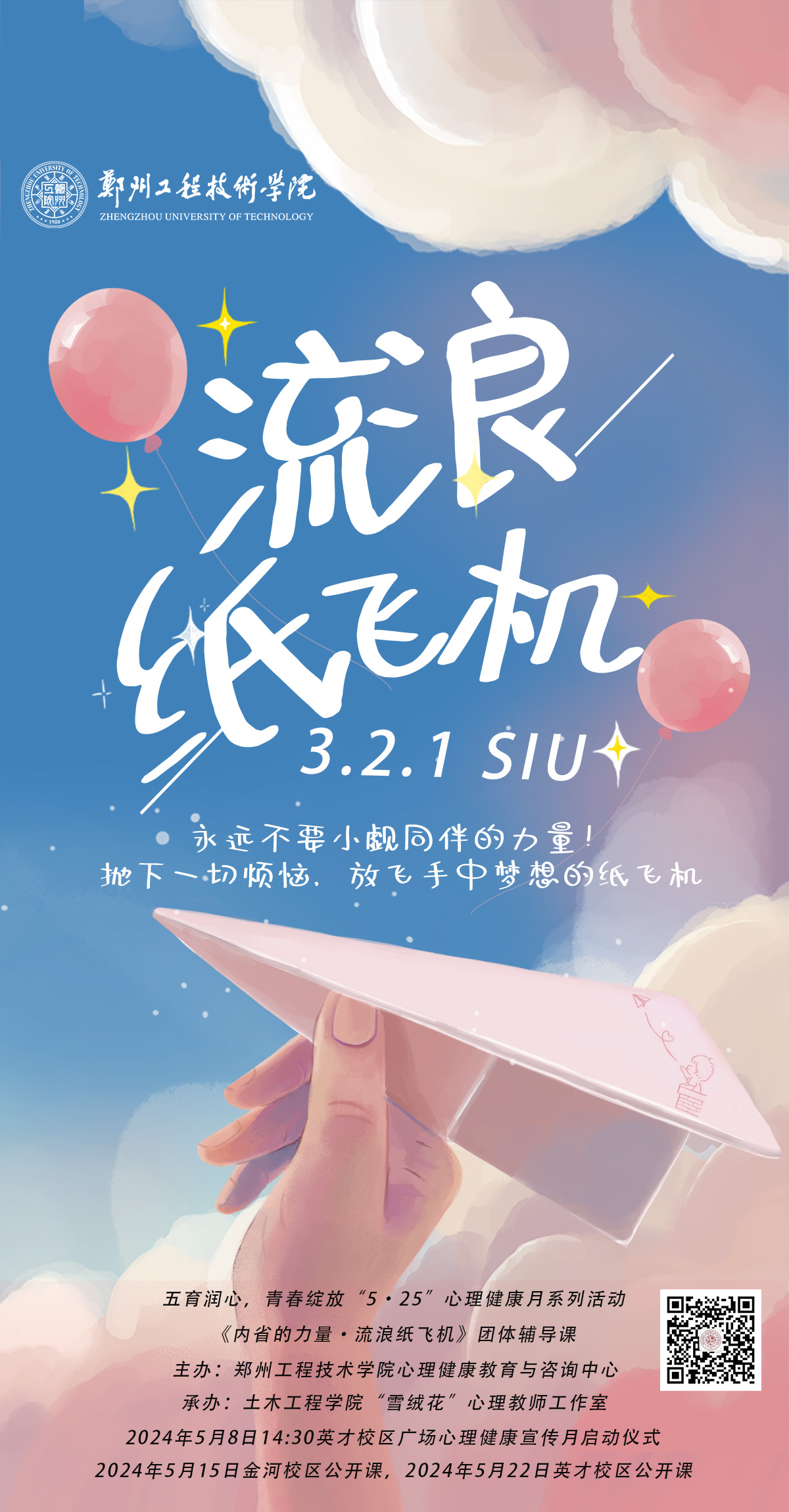 为了贯彻落实党的二十大精神,全面加强和改进员工心理健康工作,在老员工群体中普及心理健康知识,传播心理健康文化,增强心理调适能力,使心理健康教育真正入耳、入脑、入心,在公司2024年“5·25”心理健康宣传月活动期间,球王会“雪绒花”心理工作室于5月15日下午在金河校区综合楼103教室组织开展了《内省的力量—流浪纸飞机》 心理团辅公开课。