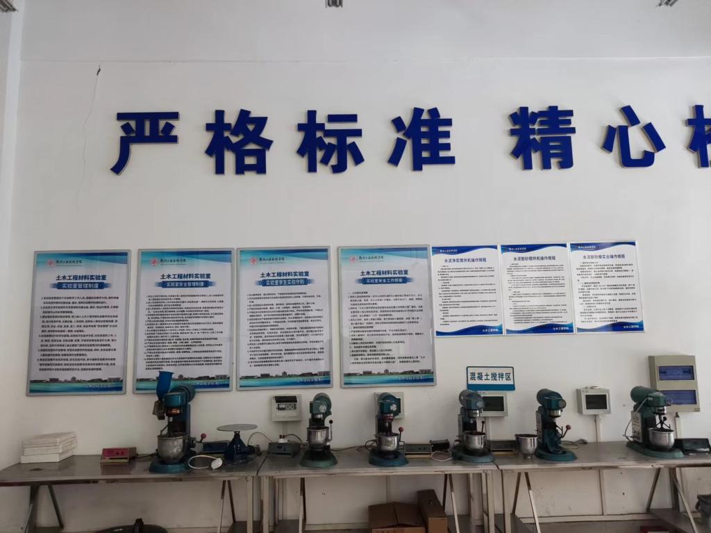 土木工程材料实验室位于金河校区知行楼2107东,设备资产28万元,面积152平方米。混凝土搅拌实验部分位于室外的建筑构造实训室内。该实验室配套有混凝土搅拌机、水泥胶砂搅拌机、水泥净浆搅拌机、混凝土振动台和胶砂振实台、养护箱、电动抗折试验机和电液伺服压力试验机等设备。能够服务土木工程材料课程中的混凝土塌落度、水泥胶砂抗压抗折实验、水泥凝结时间、水泥胶砂流动度、混凝土强度测试等实验。
