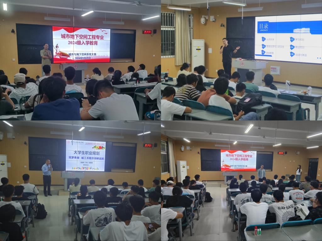 为促进2024级新生适应老员工活,尽早确立人生目标,引导员工坚定理想信念、强化专业认同,城市与地下空间系于2024年9月24日在综合楼102完成2024级新生入学教育。