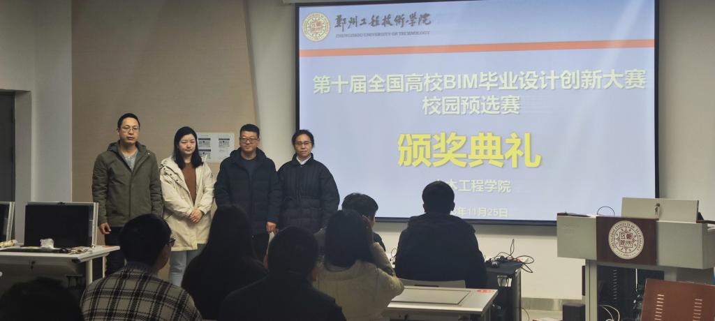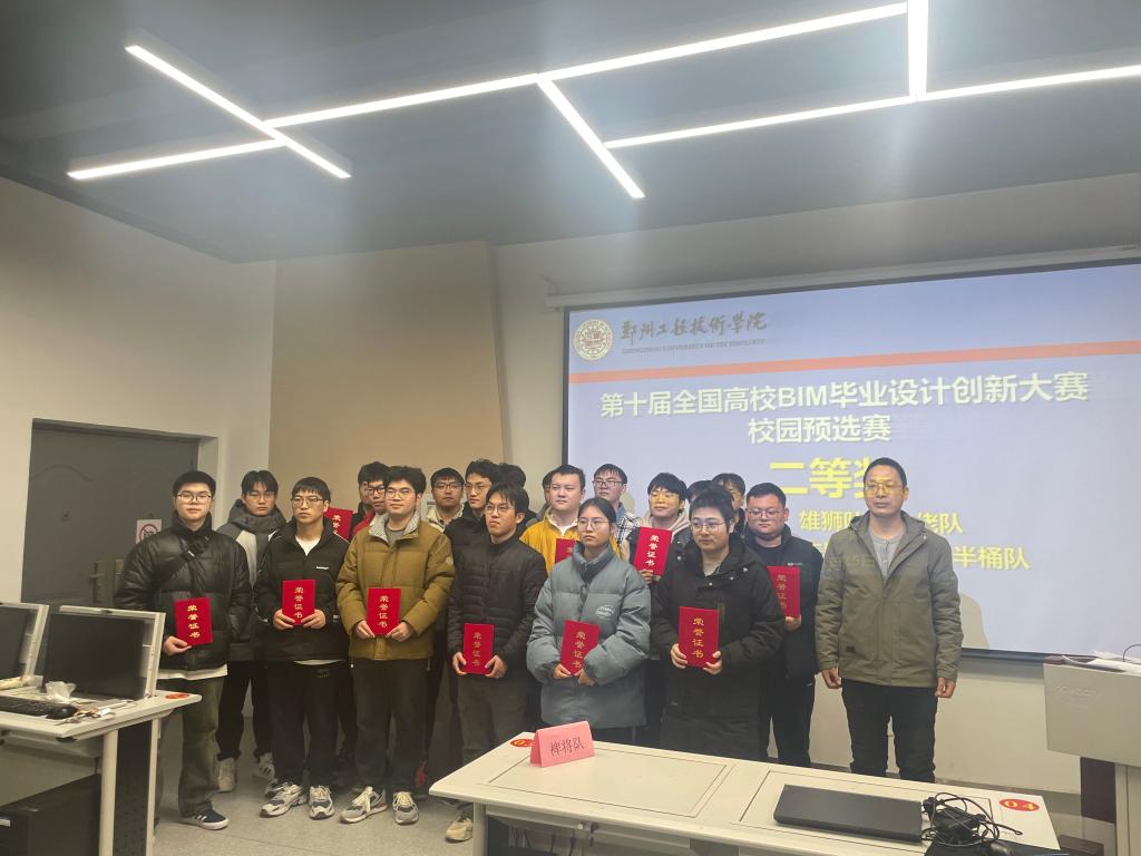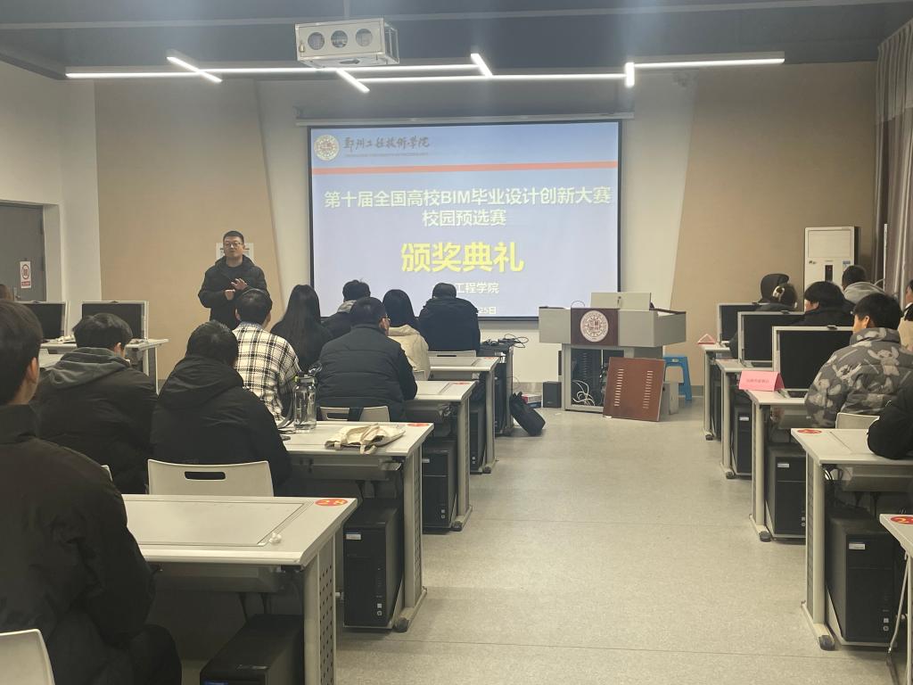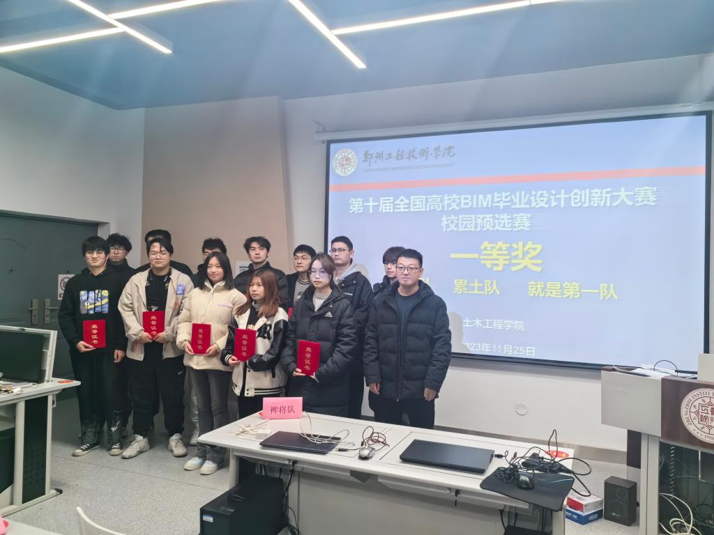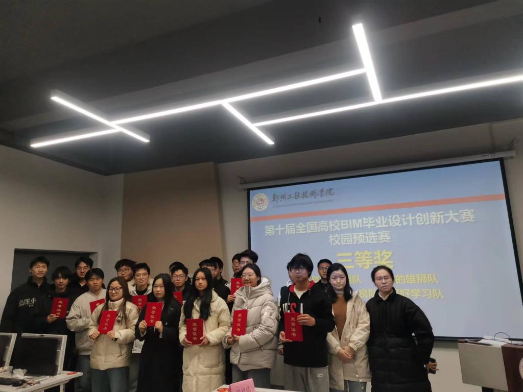 2023年11月25日,“第十届全国高校BIM毕业设计创新大赛”校园预选赛在球王会实训楼成功举办。本次竞赛共报名15支队伍,54人参加。本着以赛促教、以赛促学、以赛促创的宗旨,大家认真准备,积极训练,认真比赛,发挥出了应有水平,经过激烈角逐,公平评选,评出了一、二、三等奖。其中获得一等奖的三支队伍:裨将队、累土队、就是第一队被推荐参加全国比赛。