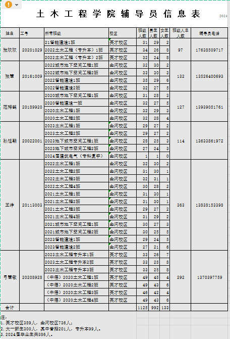 土 木 工 程 学 院 辅 导 员 信 息 表