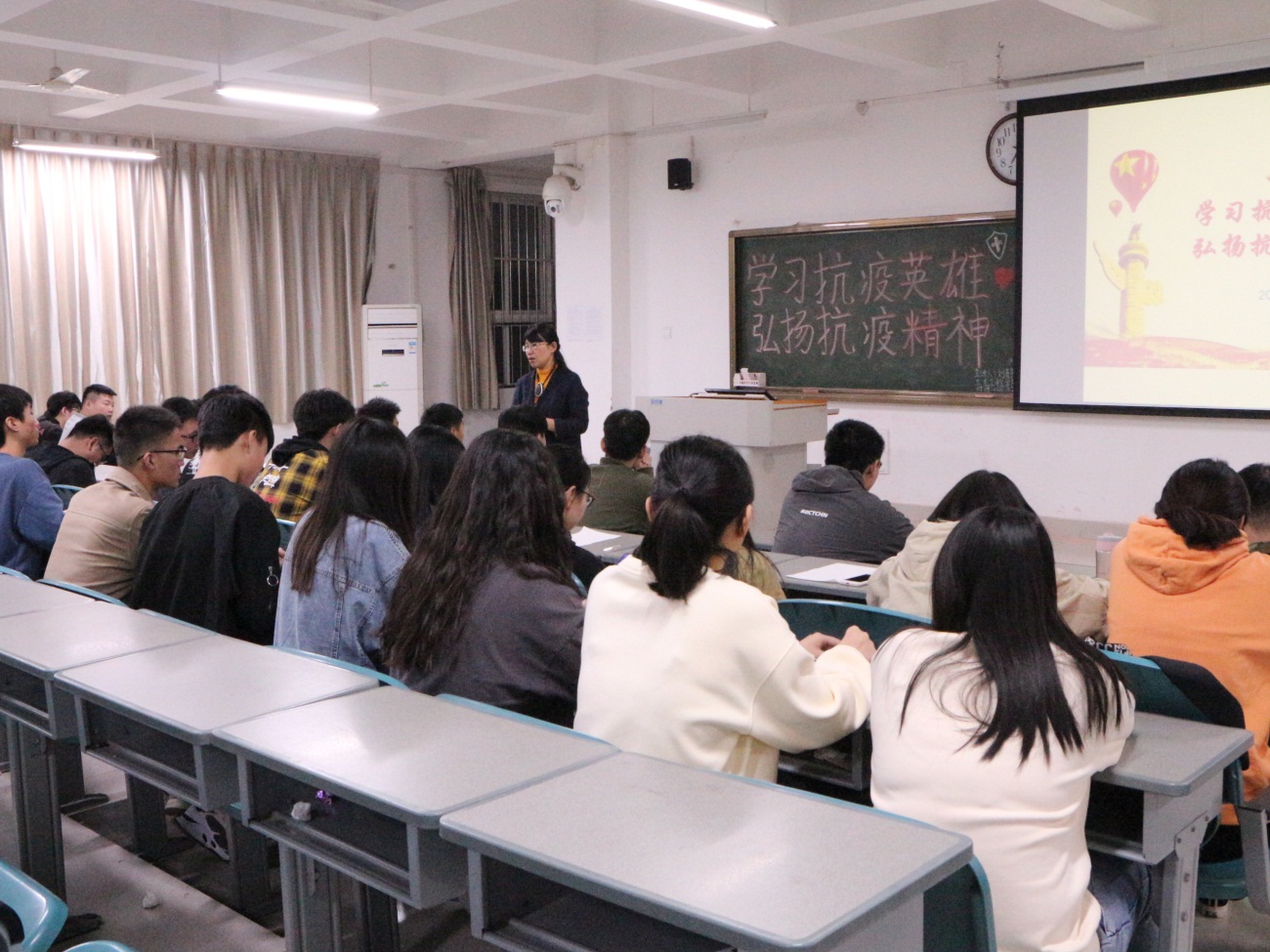 为深入学习贯彻习近平总书记在全国抗击新冠肺炎疫情表彰大会上的重要讲话精神,弘扬伟大的抗疫精神,大力加强理想信念教育、爱国主义教育,培养员工奋斗意识和家国情怀,10月23日,公司党总支书记刘静作为班导师深入班级,给18级工程管理专业员工召开了以“学习抗疫英雄,弘扬抗疫精神”为主题的思政课。刘书记带领大家共同学习了在过去9个多月时间里,我们党团结带领全国各族人民,进行的一场惊心动魄的抗疫大战,经受了艰苦卓绝的历史大考,取得抗击新冠肺炎疫情斗争重大战略成果,中国人民和中华民族以敢于斗争、敢于胜利的大无畏气概,铸就了生命至上、举国同心、舍生忘死、尊重科学、命运与共的伟大抗疫精神。分析了中国在抗疫斗争中展现的中国精神、中国力量、中国担当和中国社会主义国家的制度优势。