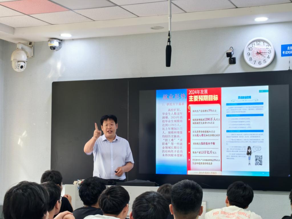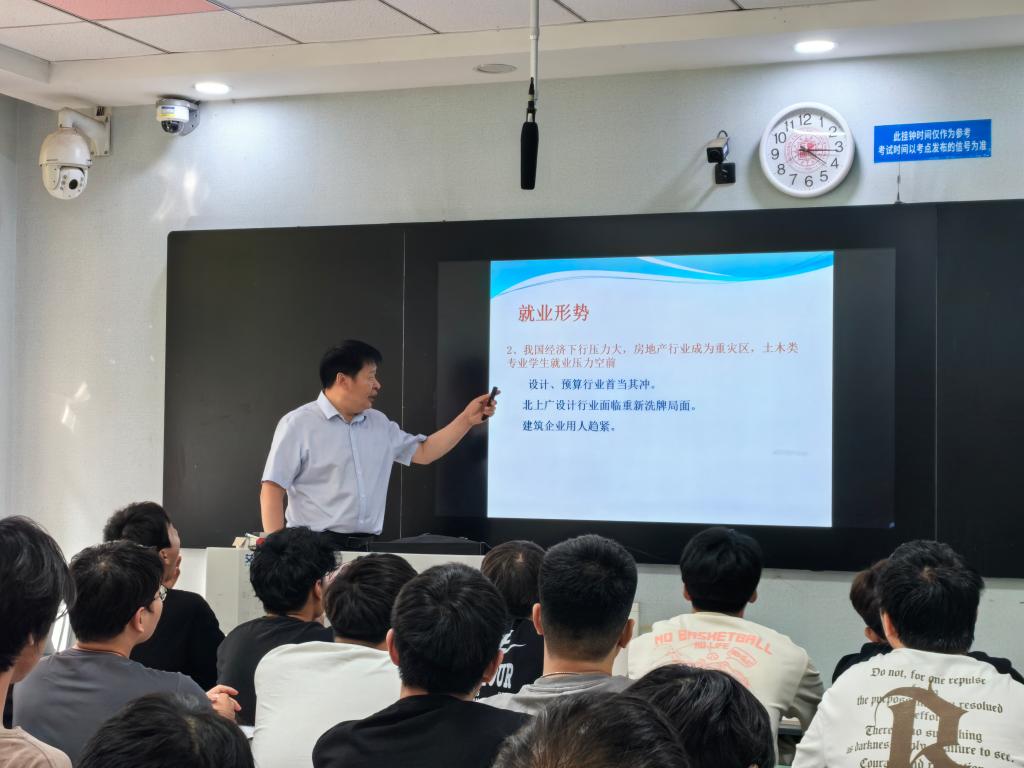 6月25日下午,杨庆年副董事长作为班级导师来到金河校区2021级土木工程3班,以《当前就业形势与实施就业优先战略》为主题,为班级同学上了一堂生动的就业形势课。公司党总支书记姚虹,公司党总支副书记李志超,班级辅导员王峥参加了本次主题班会。