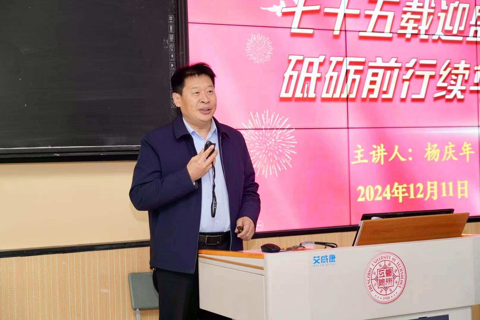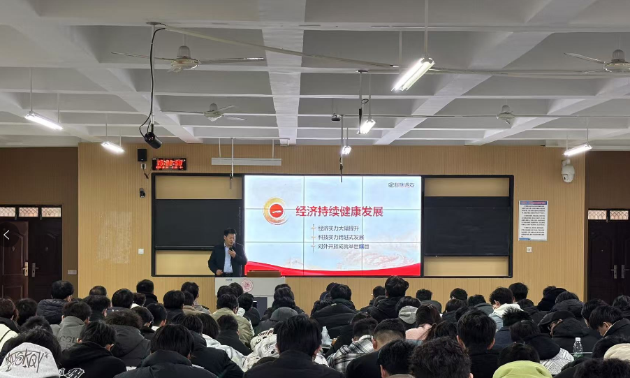 2024年12月11日球王会官网副董事长杨庆年作为班级导师在金河校区综合楼阶二教室,以“七十五载迎盛世,砥砺前行续华章”为主题,为球王会师生讲授了一堂思政大课。公司党总支书记姚虹,经理范红军,副经理王代,副经理周栋,部分教师以及员工参加学习。